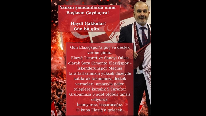 Elazığ Ticaret ve Sanayi Odası başkanı İdris Alan, Elazığspor'lu taraftarların İskenderunspor maçı için otobüs talebine kayıtsız kalmadı.