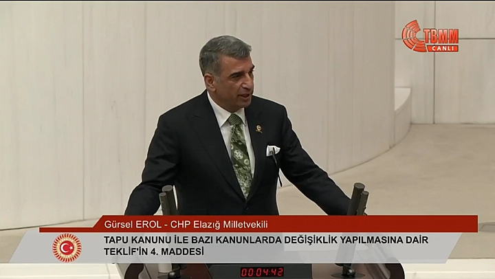 CHP Elazığ Milletvekili Gürsel Erol, Türkiye Büyük Millet Meclisi'nde yaptığı konuşmada Elazığ'ın güncel sorunlarını gündeme taşıdı. Erol, özellikle sağlık alanındaki özelleştirme süreci ile tarımda yaşanan afet kaynaklı zararlar konusunda dikkat çeken değerlendirmelerde bulundu.