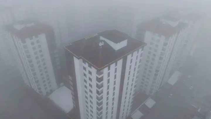 Elazığ'da 5 gündür etkisini sürdüren yoğun sis, kenti adeta görünmez hale getirdi. Özellikle yerden yaklaşık 200 metre yüksekliğe çıktığında şehir, sis tabakası nedeniyle neredeyse tamamen kayboldu. Drone ile çekilen görüntüler, kentin sis altında kaybolduğu anları gözler önüne serdi. Şehrin tepeden bakıldığında bulutların üzerinde gibi göründüğü bu kareler, kartpostallık manzaralar ortaya çıkardı.