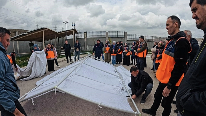 Elazığ İl Afet ve Acil Durum Müdürlüğü tarafından, afetlere karşı daha hazırlıklı bir toplum oluşturma hedefiyle yürütülen gönüllülük faaliyetleri kapsamında düzenlenen 'Destek AFAD Gönüllüsü' eğitimleri aralıksız sürüyor. 5 gün sürecek yoğun ve kapsamlı programın ikinci gününde gerçekleştirilen eğitimlerde gönüllülere hem teorik hem de pratik bilgiler aktarıldı. Eğitim programı kapsamında; destek AFAD gönüllüsü saha eğitimi, afet farkındalık eğitimi, çadır kurulumu, yangın eğitimi, ilkyardım farkındalık eğitimi ve insani yardım eğitimi başlıklarında uygulamalı çalışmalar yapıldı.