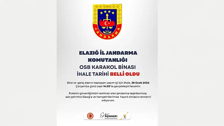 Elazığ İl Jandarma Komutanlığı OSB Karakol Binası Yapım İşi ihaleye çıkıyor