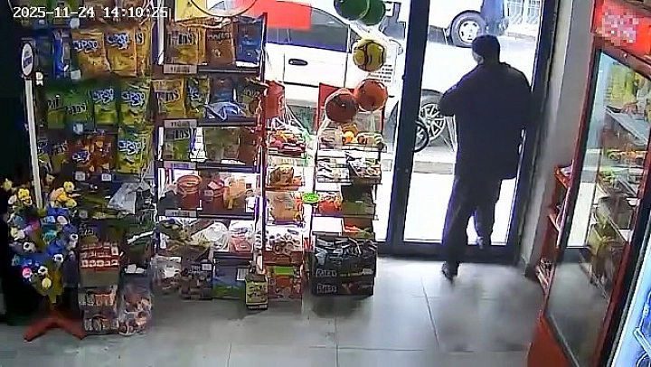 Olay, Rızaiye Mahallesi'nde bulunan bir markette yaşandı. Markete giren kişi alışveriş yaptıktan sonra çıkarken cam kapıyı fark etmeyerek kafasını çarptı. Çarpmanın etkisiyle kapının camı kırılırken. O anlar ise iş yerinin güvenlik kamerasına yansıdı.