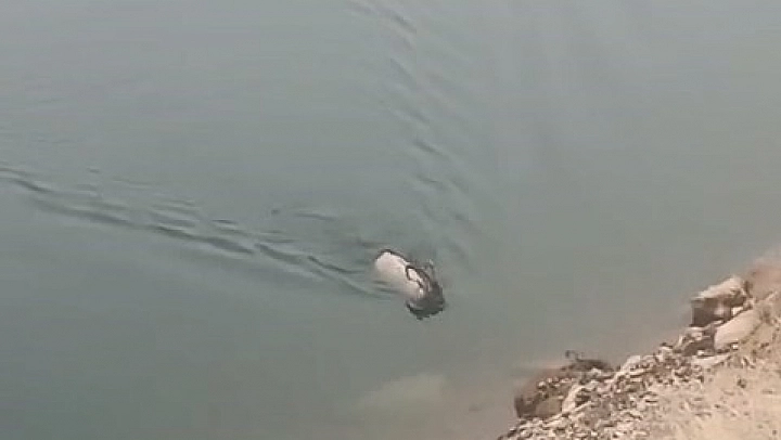 Sarp kayalıkların uzmanı, baraj gölünde yüzerken fark edildi.