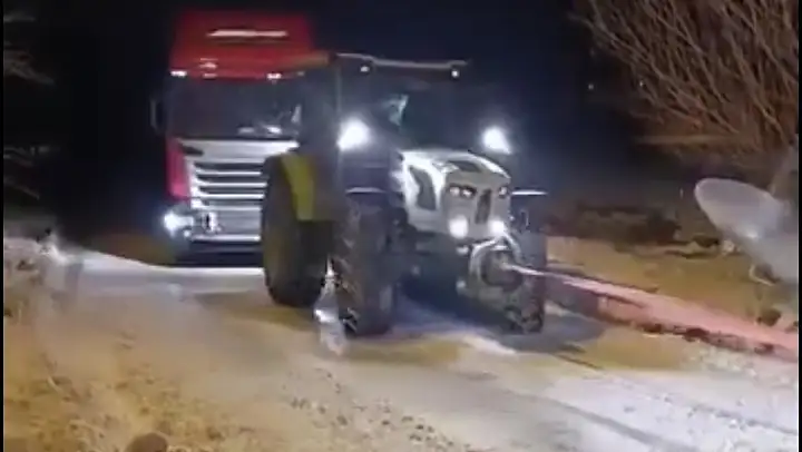 Elazığ'da yolda kalan tır, köy sakinleri ve İl Özel İdaresi ekiplerinin ortak çalışması ile kurtarıldı. Birbirine halatlarla bağlana kar küreme aracı ve 2 traktör, konvoy halinde ortak hareket ederek tırı kaldığı noktadan kurtardı.