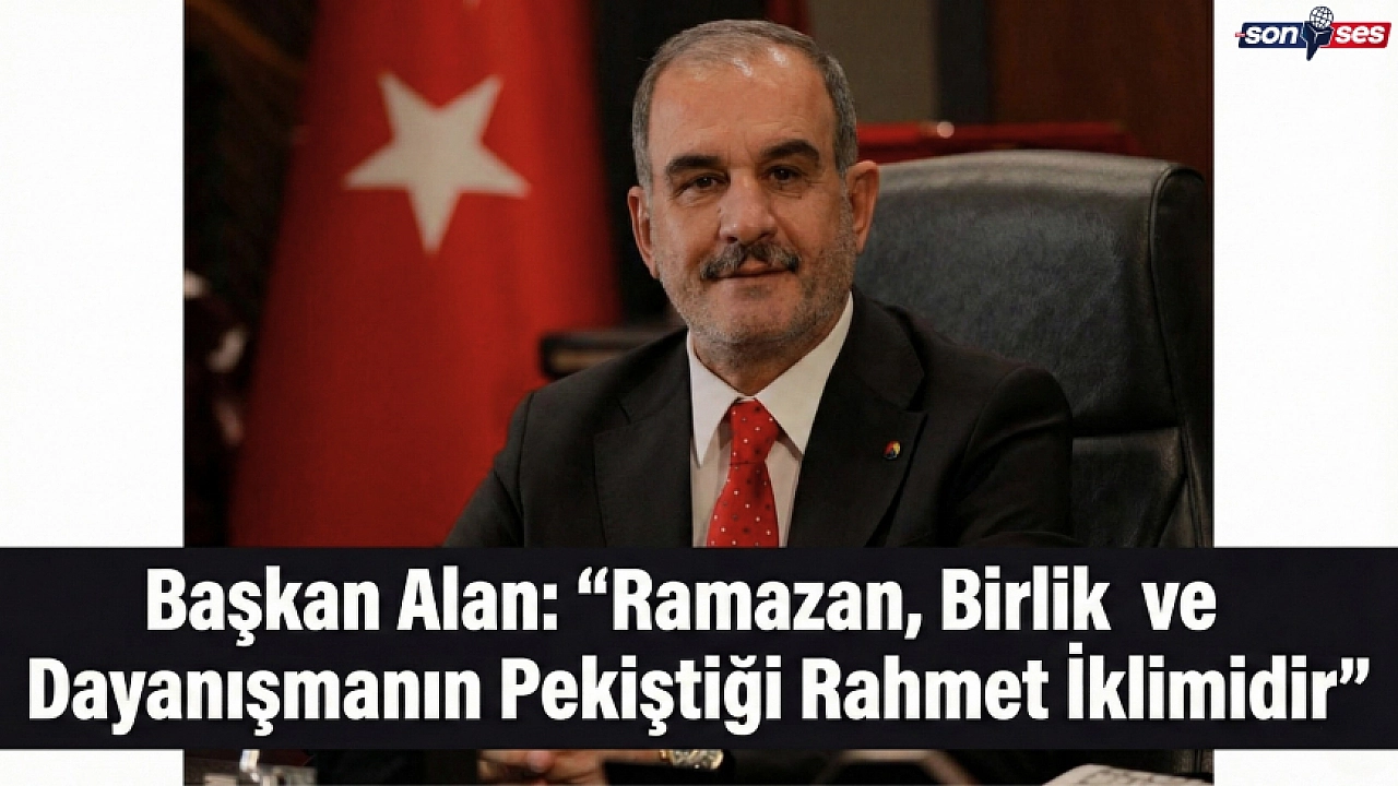 Ramazanın milli birlik ve beraberliğin pekiştiği, kardeşlik, dayanışma ve yardımlaşmanın en güzel örneklerinin yaşandığı kutsal ve müstesna zaman dilimleri olduğunu ifade eden Başkan Alan, "On bir ayın sultanı ramazan; rahmet, mağfiret ve bereketiyle başlıyor. Sosyal yardımlaşma, dayanışma ve paylaşmanın zirveye çıktığı, sevgi, hoşgörü ve kardeşlik duygularının daha da güçlendiği bu ayda merhametin tüm dünyayı kuşatarak başta Gazze olmak üzere gözyaşlarının dinmesine vesile olmasını diliyorum.” Dedi.