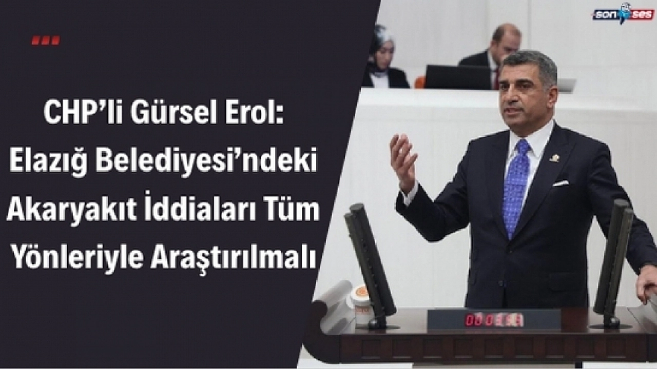 - CHP'li Gürsel Erol: Elazığ Belediyesi'ndeki Akaryakıt İddiaları Tüm Yönleriyle Araştırılmalı