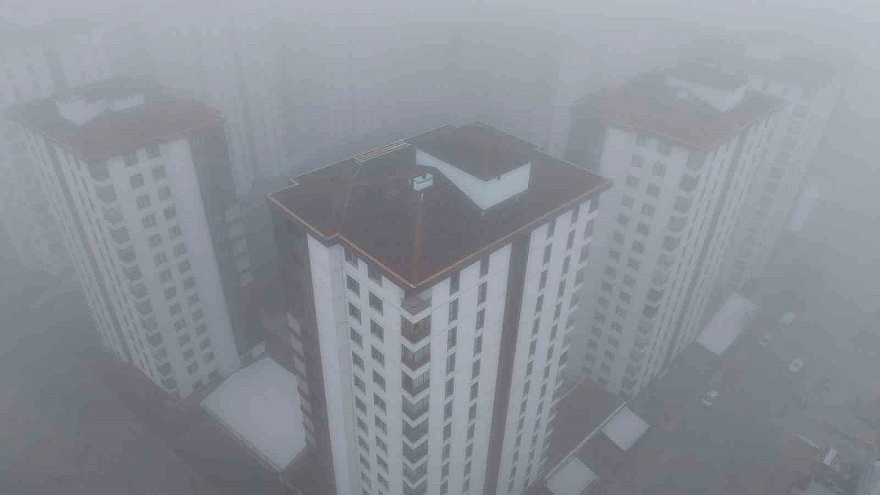 Elazığ’da yerden yaklaşık 200 metre yükseklikten şehir, yoğun sis nedeniyle neredeyse tamamen kayboldu.