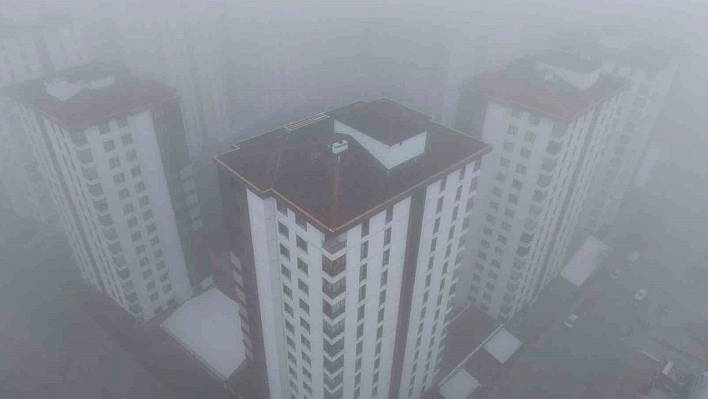 Elazığ'da yerden yaklaşık 200 metre yükseklikten şehir, yoğun sis nedeniyle neredeyse tamamen kayboldu.