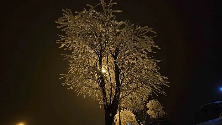 Elazığ'da ağaçlar kırağıyla kaplandı.