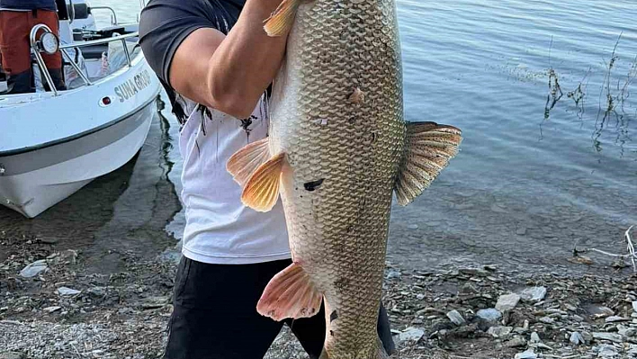 Elazığ'da profesyonel bir balıkçı, Keban Baraj Gölü'nde 70 kiloluk turna balığı yakaladı.