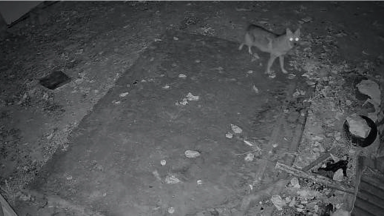 Elazığ'da yiyecek arayan çakal güvenlik kameraları tarafından görüntülendi.