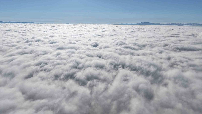 Elazığ'da sis etkili olurken, dron ile çekilen görüntülerde kent üzerinde alçalan bulutların görsel şöleni izleyenleri mest etti.