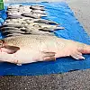 Elazığ’da amatör balıkçılar, Murat Nehri’nde 52 kiloluk dev bir turna balığı yakaladı. Yakaladığı dev turnayı kıyıya çıkaran balıkçılar, daha sonra balık işletmesine getirerek satışa çıkardı. Et halinde kilosu 500 liradan satışa çıkan balık, alıcılarını bekliyor.
