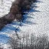 Elazığ'da kar üstünde gezen domuz sürüsü, dronla görüntülendi.
