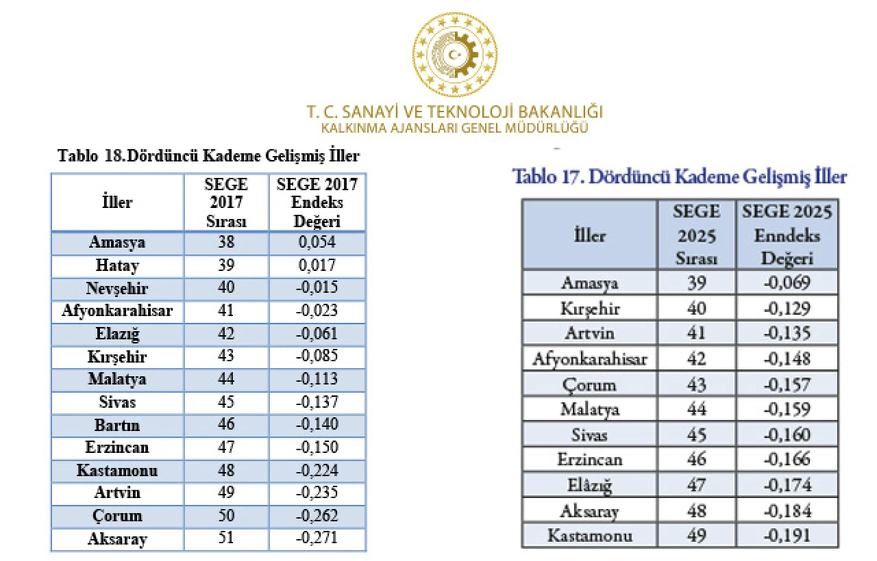 Sanayi ve Teknoloji Bakanlığı Tarafından Hazırlanan SEGE -2025 Raporuna göre Elazığ 6 yılda 5 basamak geriye düştü.