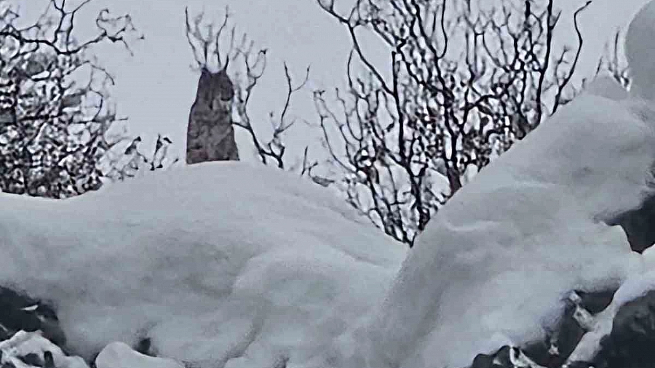 Elazığ’ın Karakoçan ilçesinde vaşak, karla kaplı dağlık alanda görüntülendi.
