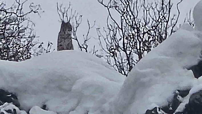Elazığ'ın Karakoçan ilçesinde vaşak, karla kaplı dağlık alanda görüntülendi.