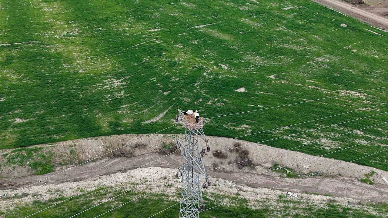 Baharla birlikte Elazığ’a gelen leylekler kente renk katıyor.