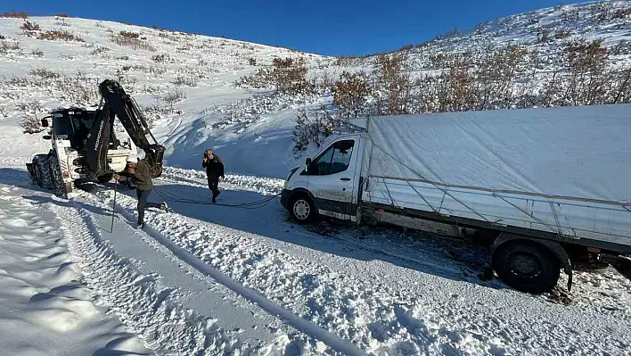 Elazığ'ın Kovancılar ilçesinde karla kaplı yolda şarampole düşen pikap, İl Özel İdaresi ekipleri tarafından kurtarıldı.