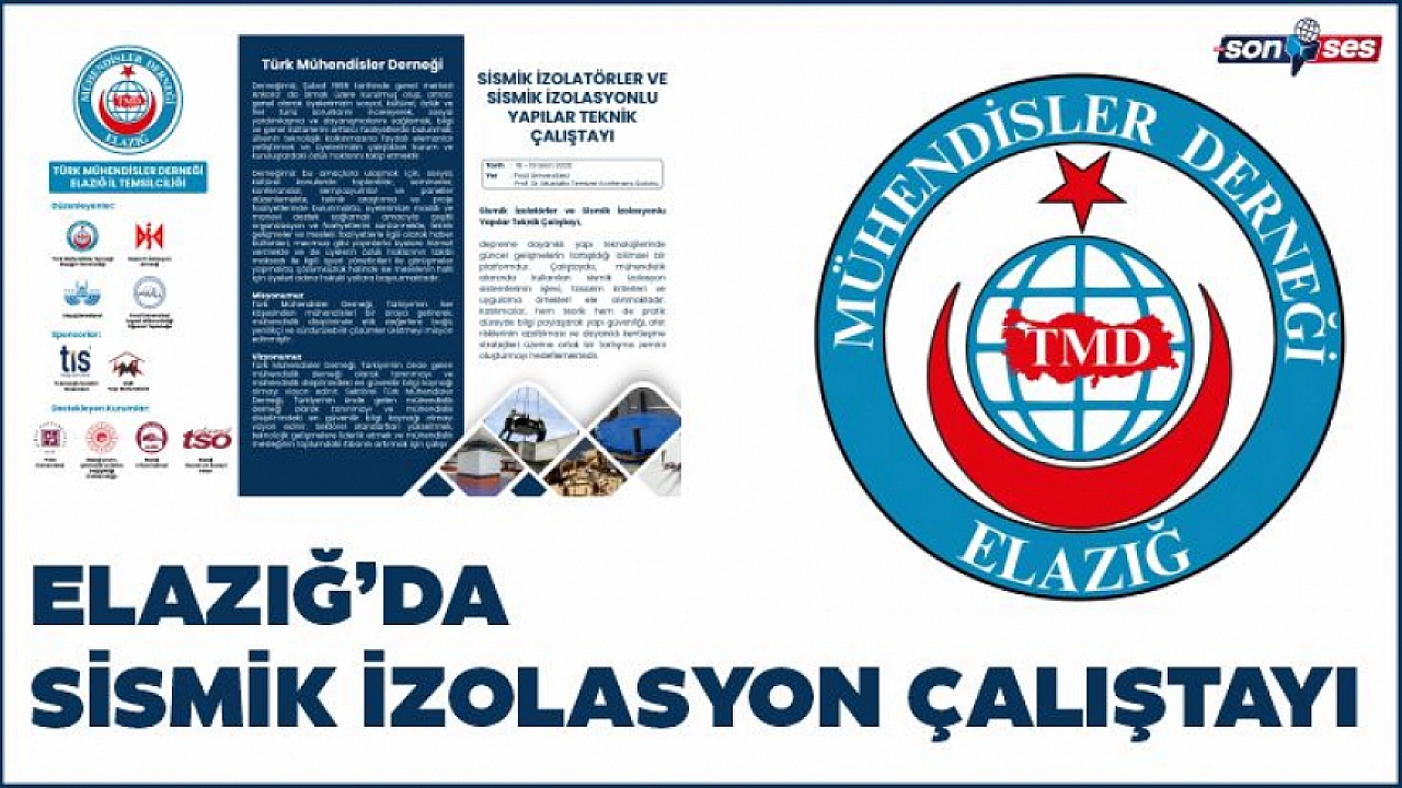 Türk Mühendisler Derneği (TMD) Elazığ İl Temsilciliği ev sahipliğinde Deprem İzolasyon Derneği (DİD), Elazığ Belediyesi ve Fırat Üniversitesi İnşaat Mühendisliği Öğrenci Topluluğu (FİMÜ) iş birliği ile düzenlenecek olan “Sismik İzolatörler ve Sismik İzolasyonlu Yapılar Teknik Çalıştayı”, deprem güvenliği, yapı teknolojileri ve yerli izolatör üretimi konularında Türkiye’nin önde gelen akademisyenleri ile mühendislerini bir araya getirecek.