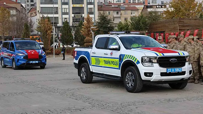 Elazığ’da Valilik Meydanında İl Emniyet Müdürlüğü ve İl Jandarma Komutanlığına tahsis edilen 84 yeni aracın hizmete alım töreni gerçekleştirildi. Program, saygı duruşu ve İstiklal Marşının okunmasıyla başladı. Ardından İl Müftüsü Yusuf Bingöl’ün yaptığı dua ile araçların hizmete alım süreci tamamlandı. Törene, Elazığ Valisi Numan Hatipoğlu, AK Parti Elazığ Milletvekili Ejder Açıkkapı, CHP Elazığ Milletvekili Gürsel Erol, Elazığ Belediye Başkanı Şahin Şerifoğulları, Fırat Üniversitesi Rektörü Prof. Dr. Fahrettin Göktaş, Cumhuriyet Başsavcısı Aşkın Yeğin, İl Jandarma Komutanı Tuğgeneral Alpaslan Doğan, İl Emniyet Müdürü Adnan Karayel, İl Müftüsü Yusuf Bingöl, siyasi parti temsilcileri, kurum ve kuruluş müdürleri katıldı.