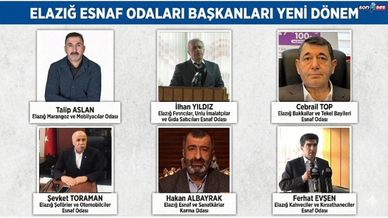 Ayrıca, Hakan Albayrak Elazığ Esnaf ve Sanatkârlar Karma Odası’nda, İlhan Yıldız ise Elazığ Fırıncılar, Unlu İmalatçılar ve Gıda Satıcıları Esnaf Odası’nda güven tazeleyerek yeniden başkanlık koltuğuna oturan isimler oldular.
