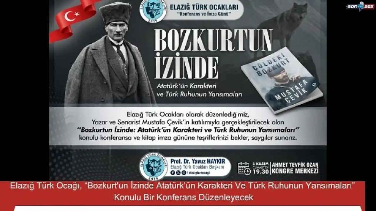 - Elazığ Türk Ocağı, 'Bozkurt'un İzinde Atatürk'ün Karakteri Ve Türk Ruhunun Yansımaları' Konulu Bir Konferans Düzenleyecek