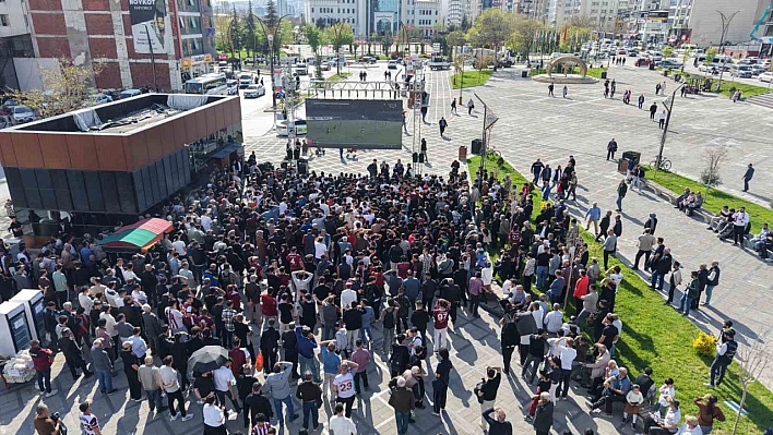 Adana 01 FK-Elazığspor maçı için yüzlerce Elazığspor taraftarı, kent merkezinde kurulan dev ekrandan mücadeleyi takip etti.