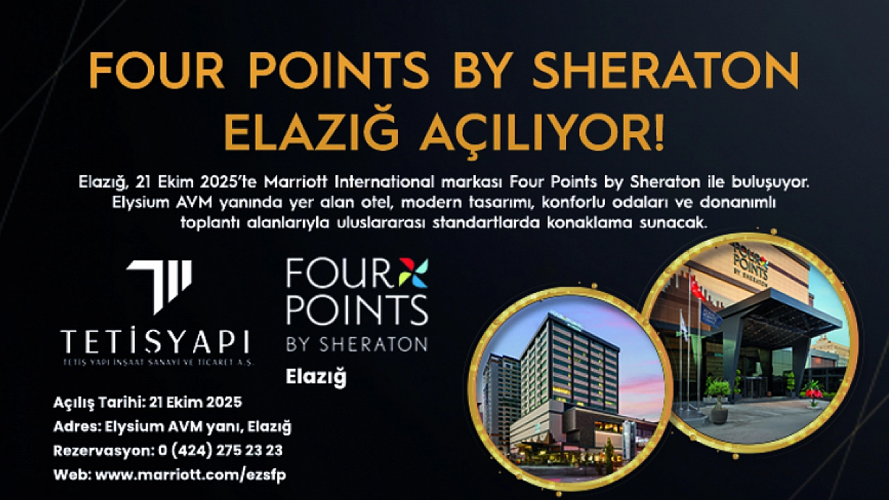 Elazığ, 21 Ekim 2025 itibarıyla Marriott International ailesinin seçkin markalarından Four Points by Sheraton ile buluşuyor.