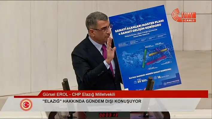 Cumhuriyet Halk Partisi (CHP) Elazığ Milletvekili Gürsel Erol, toplamda 4 koridordan oluşan Yatırım Alanları projesine Elazığ'ın dahil edilmemesi konusunu TBMM gündemine taşıdı.