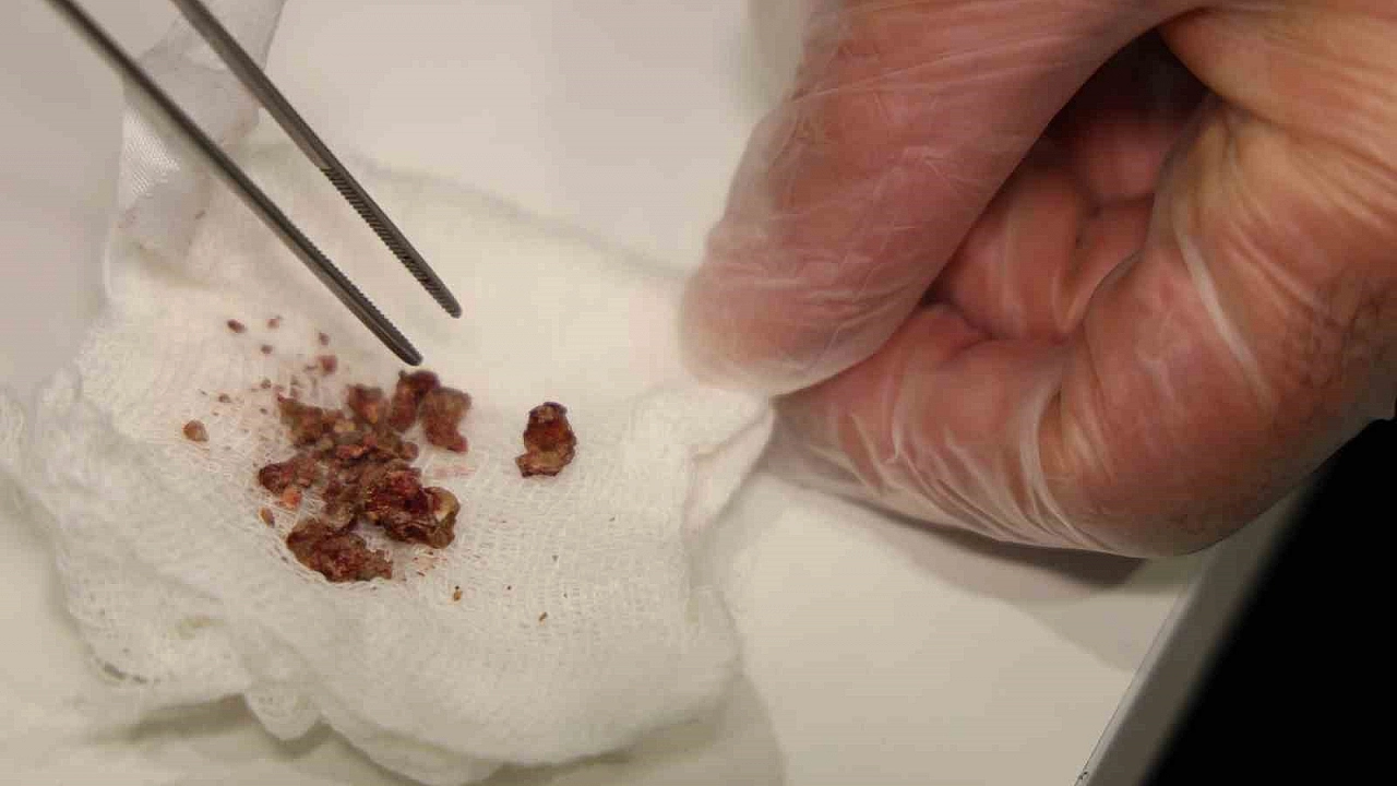 Hastanın burunda şekil bozukluğu şikayetiyle kendilerine başvurduğunu ifade eden Op. Dr. Demirbağ, " Gerekli tetkikleri yaptıktan sonra ameliyatımıza aldık. Ameliyat sırasında rutin işlemlerimizi gerçekleştirirken burun içinde normalde karşılaşmadığımız taşlarla karşılaştık. Biz buna tıpta rinolit adını veriyoruz. Rinolitler, genellikle çocukluk yaş grubunda, çocukların burun içine koyduğu yabancı cisimler nedeniyle oluşur. Bunlar boncuk, kağıt, peçete parçaları gibi cisimler olabilir. Uzun yıllar boyunca bu yabancı cisimlerin etrafında biriken kalsiyum ve magnezyum mineralleri sonucunda taşlaşma meydana gelir. Genellikle ufalanabilir yapıda olsalar da uzun sure fark edilmediklerinde büyüyerek burun tıkanıklığına, zamanla burun içi kanamalarına ve tek taraflı kötü kokulu burun akıntılarına yol açabilirler. Nadiren de bulundukları bölgeye göre hiçbir belirti vermeyebilirler. Hastamız da bu nedenle daha önce bize başvurmamış, asil amacı estetik ameliyattı. Ameliyat sırasında taşı fark ettikten sonra endovizyon sistemini kurarak rinolitlerin tamamını çıkardık. Sonrasında herhangi bir kanama ya da ek bir problemle karşılaşmadık" dedi.