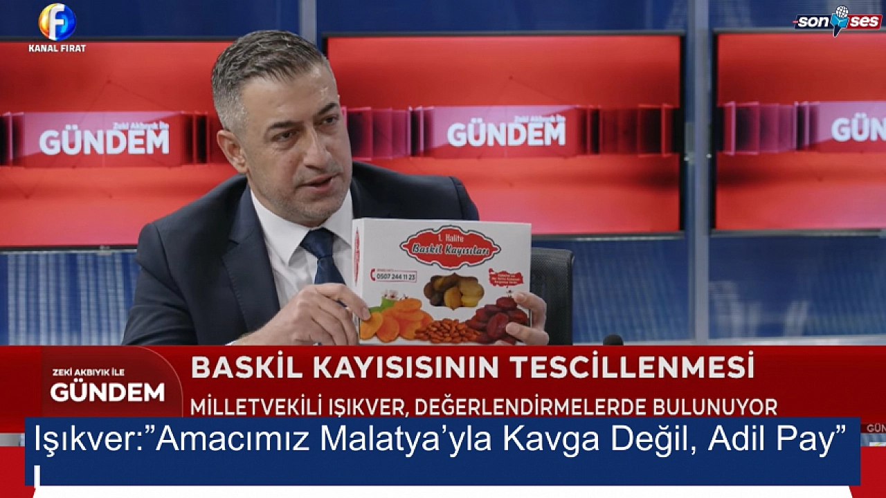 MHP Elazığ Milletvekili Semih Işıkver, Kanal Fırat ve Kanal E televizyonlarımız genel yayın yönetmeni Zeki Akbıyık'ın sunduğu 'Gündem' programında önemli açıklamalarda bulundu. Baskil kayısısının Malatya adı altında tescillenmesine tepki gösteren Işıkver, 'Bizim derdimiz Malatya'yla yarışmak değil, kendi ürünümüze sahip çıkmak' dedi. Kayısının tescilinin yanında Baskil'in turizm potansiyeline de dikkat çekti.