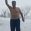 Kar sevinciyle üstsüz dışarı çıktı
