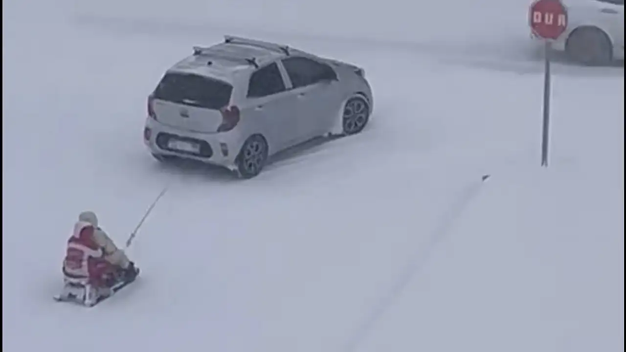Elazığ’da kar yağışı aralıksız sürüyor. Birçok noktada hayat durma noktasına gelse de bazı vatandaşlar bunu eğlenceli duruma getirdi. Bir kızak aracın arkasına bağlanarak çekildi. Üzerindeki 2 kişi ise kayarak eğlendi. Trafikteki tehlikeli eğlence kameralara yansıdı.