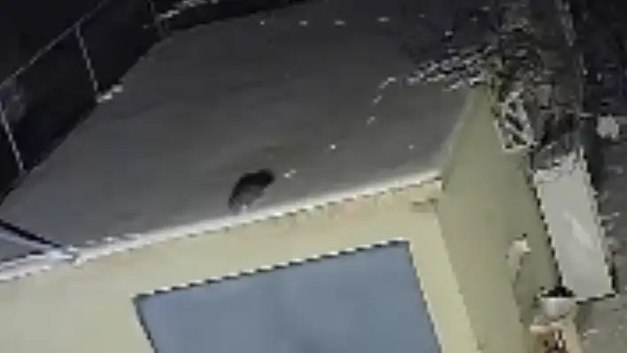 Elazığ'da nesli tükenme tehlikesi altındaki sansar görüntülendi. Karlı damda koştuğu anlar güvenlik kamerasına yansıdı.