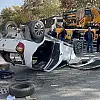 Otomobil karşı şeride geçip ters dönerek kaza yaptı: 2 yaralı