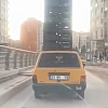 Otomobilin tavanında sebze kasaları taşıdı, trafiği tehlikeye attı