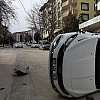 Park Halindeki Araca Çarpan Araç Yan Yattı
