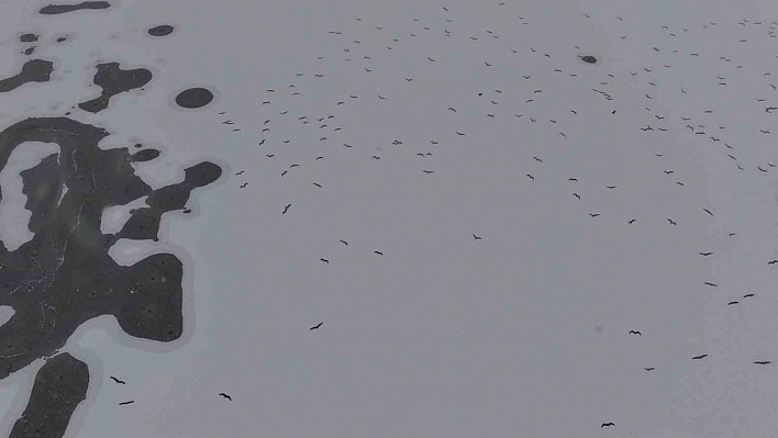 Elazığ’da etkili olan soğuk hava dalgası nedeniyle hava sıcaklığı eksi 11’lere kadar düştü. Yaşanan soğuklar yaklaşık 1,3 kilometrekare büyüklüğündeki Cip Baraj Gölü’nün donmasına neden oldu. Buz tutan gölün yüzeyi, ardından yağan karla karla kaplandı. Karla kaplanan alanlar havadan dronla görüntülendi.