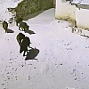 Elazığ’da kar yağışı sonrası doğada yiyecek bulmakta güçlük çeken domuzlar, Baskil ilçesi Hacıhüseyinler köyüne indi. Köyün içerisinde bulunan güvenlik kamerasına yansıyan domuz sürüsü bir süre sonra gözden kayboldu. O anlar güvenlik kamerası tarafından saniye saniye kaydedildi.