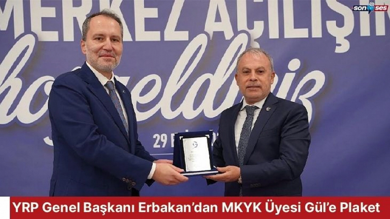 YRP Genel Başkanı Erbakan'dan MKYK Üyesi Gül'e Plaket